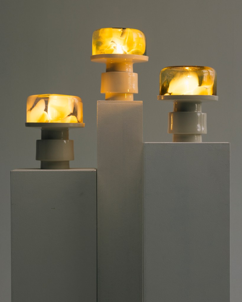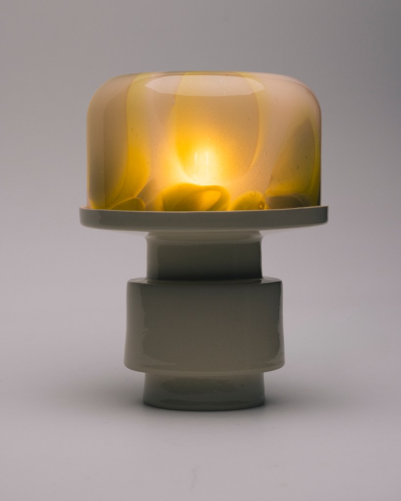 MAJAKKA-valaisimissa yhdistyy kaksi suomalaisen käsityön perinteisintä materiaalia, keramiikka ja puhallettu lasi. Valaisimen jalka valmistetaan valusavesta ja lasikupu puhalletaan Nuutajärvellä.